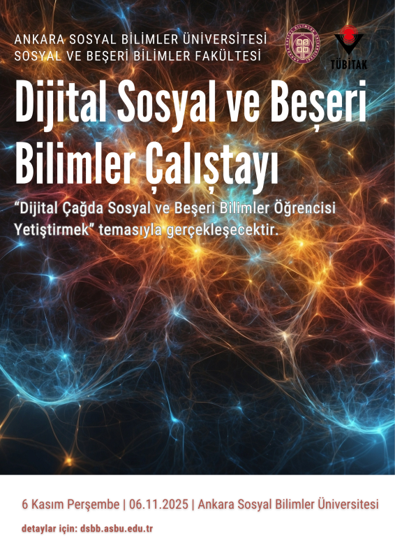 Dijital Sosyal ve Beşeri Bilimler Çalıştayı 6 Kasım 2025 Çarşamba günü Sosyal ve Beşeri Bilimler Fakültemizin bünyesinde Ankara Sosyal Bilimler Üniversitesi'nde gerçekleşecektir.